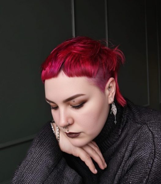 Sultry and sophisticated, this shade story indulges in a rich red wine palette, woven with magenta and aubergine undertones. A deeper root fades into vibrant crimson ends, with reflective tones placed in alternating sections to create texture and movement. Paired with a micro-fringed mullet, the look channels moody glamour with a contemporary, rock-inspired edge β perfect for the season of shadows and self-expression.