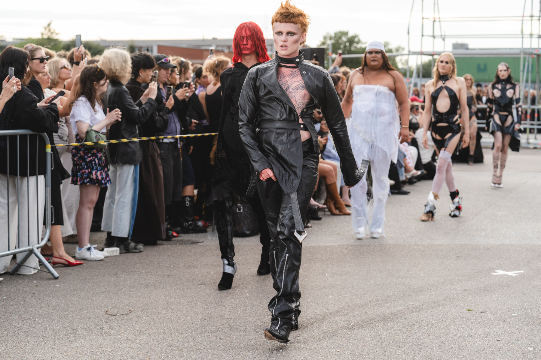 corsets, lingerie, leather and nightgowns took centre stage, with hair playing an integral role in bringing the looks to life. Hair director Kaspar Andersen says he wanted to bring the untamed energy of an afterparty to the looks. “The whole vibe was centred around that exhilarating, almost surreal journey to the after-party, a time when everyone is still in their prime but just a bit undone from hours of dancing in the club,” he says. “Each hair look was a blend of polished glam and dishevelled cool as if these individuals had been out raving all night and were now finding their way to the next destination, embodying their truest, most daring selves.”