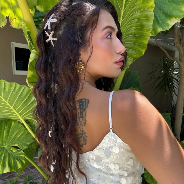 “A half-up bun with mermaid waves is a go-to look for summer festivals and fun outdoor events. Keep the bun loose and let some strands fall naturally around your face – it adds a relaxed, playful vibe that’s just right for the season,” says celebrity hairstylist Akiko Russell.
