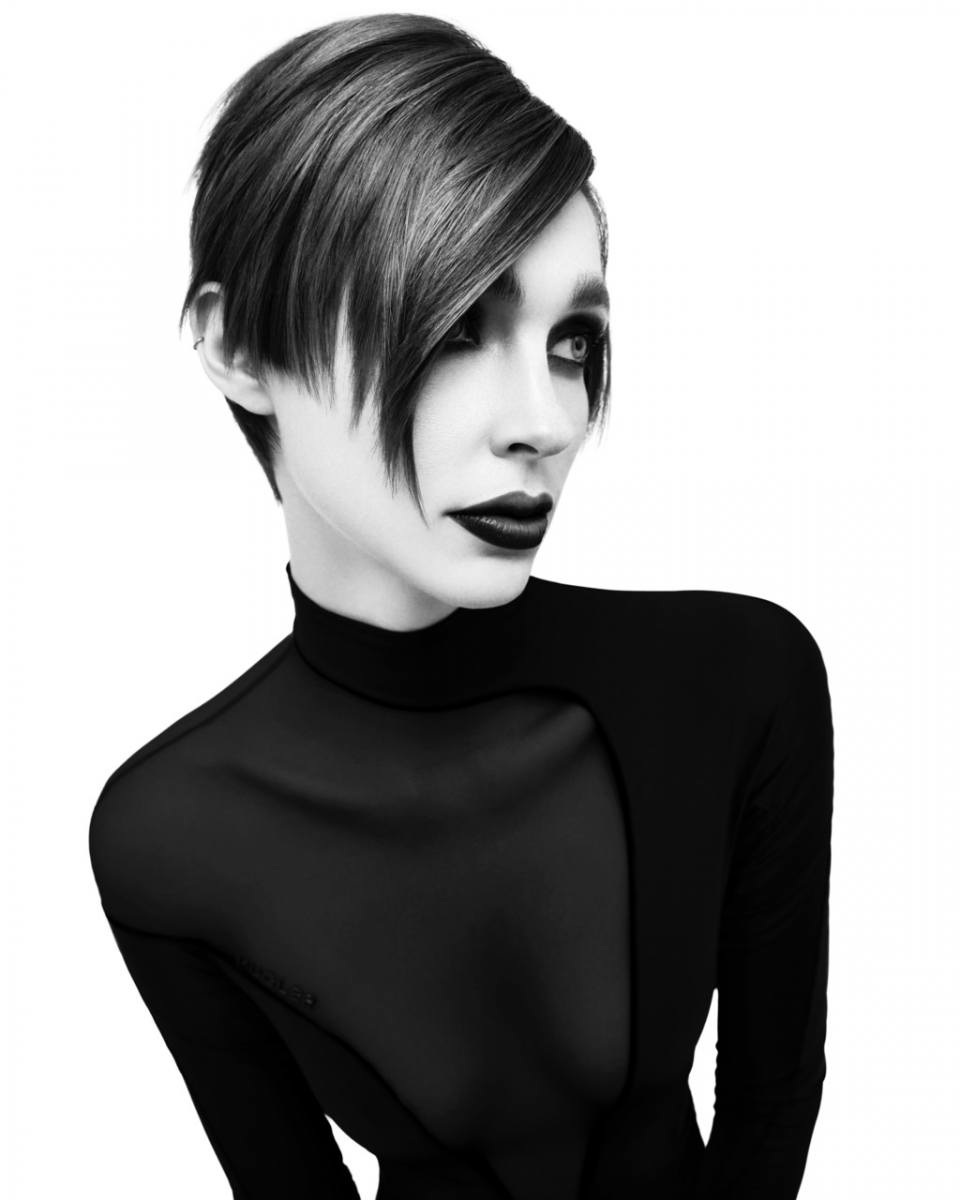 Silhouette boldly explores the relationship between precision and form. Focused on wearable geometric haircuts, the collection features sharp lines, tousled textures, and architectural shapes that highlight craftsmanship and control. Each cut is a sculptural statement, designed to frame the face and accentuate bone structure. Strong angles and clean silhouettes lend a futuristic, graphic edge to the overall aesthetic.