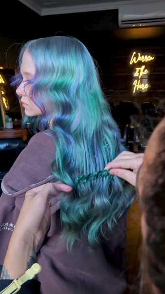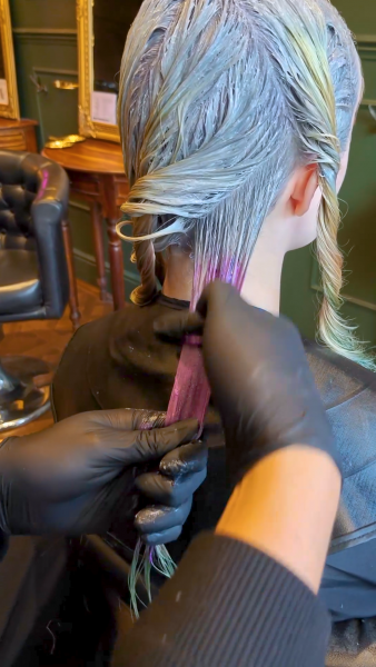 To pre-lighten, I used Crazy Color High Lift Ultraviolet Lightener with 20 vol, applied as a scalp bleach and processed for 25 minutes. Instead of traditional toning, I used a silver shampoo to gently refine the base without over-neutralising, it was important to leave room for the creative colours to do their job.