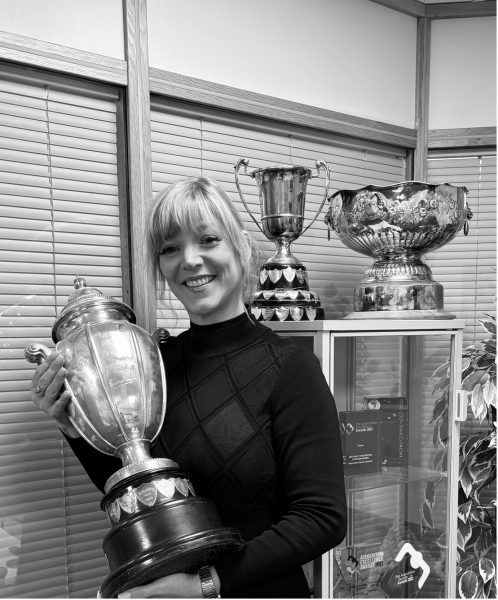 Caroline holding the Yorkshire cup