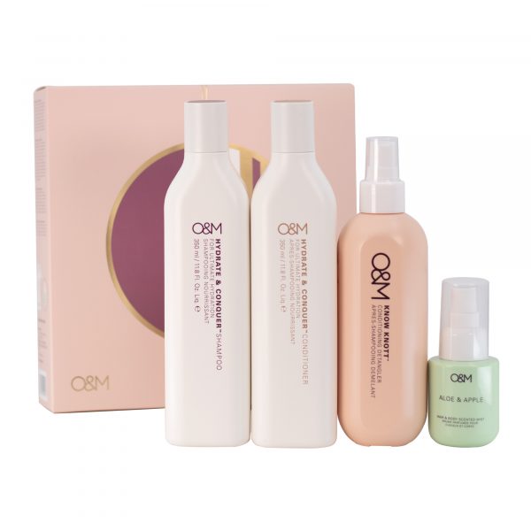 Full size intense hydrating essentials: the Hydrate & Conquer duo provides intense hydration with Certified Organic Coconut Oil and Tasmanian Sea Kelp, containing Vitamins A,B, C & E and 13 amino acids, locking in moisture for the healthiest hair. Know Knott leave-in treatment features O&M’s Signature Oil Blend of Organic Coconut & Macadamia Oils. Native Australian Desert Extracts hydrate hair leaving it glossy and knot free. Also includes an exclusive limited edition Aloe and Apple Hair & Body Scented Mist.